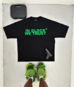 The In Glock We Trust Oversized T-Shirt Black/Green is more than apparel — it’s an attitude. Designed with a relaxed oversized fit, this tee delivers all-day comfort without sacrificing edge. The bold green logo against jet-black cotton gives your streetwear look a fearless finish. Perfect for casual outings or layering with statement jackets.