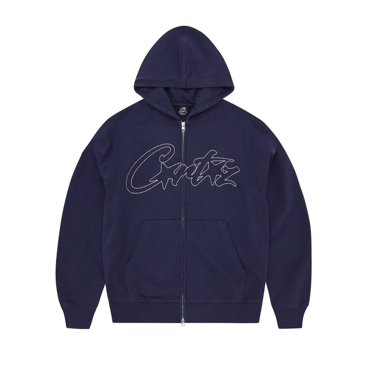 Home Corteiz Clothing THICK STITCH ALLSTARZ ZIP HOODIE NAVY
